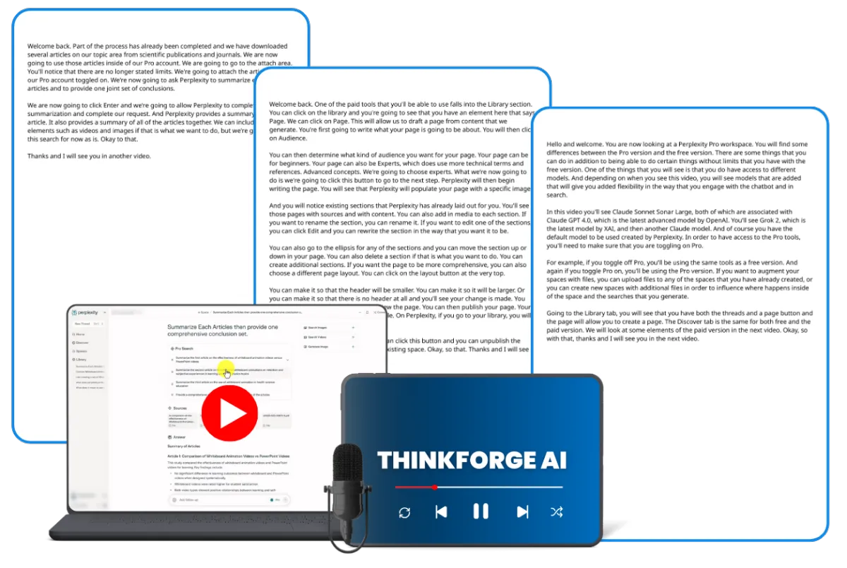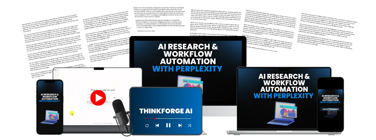 ThinkForge AI is a complete video and audio training system that teaches you how to use Perplexity to research, organize, and automate your workflow. It helps you save time, improve productivity, and create consistent results using AI.