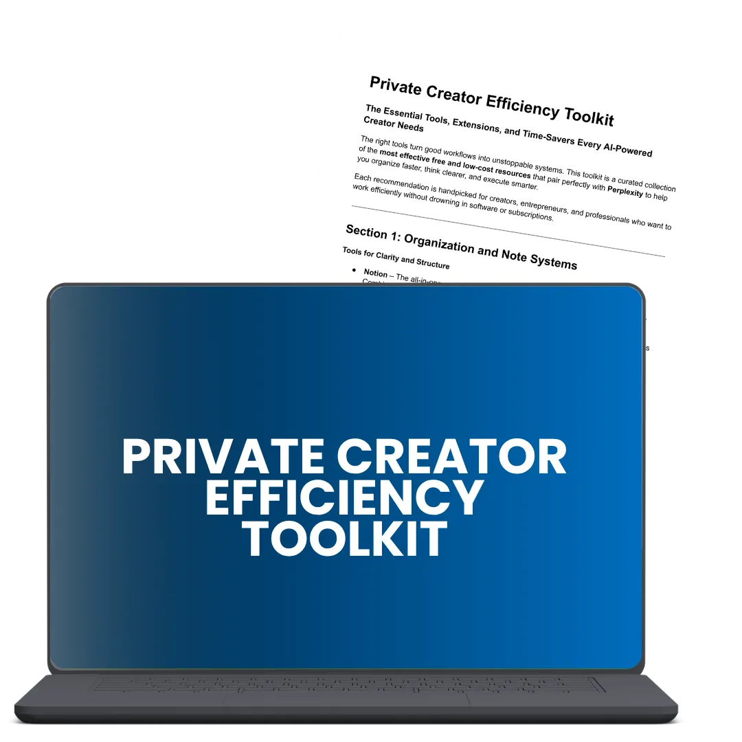 • BONUS #4: Private Creator Efficiency Toolkit – The exact tools, extensions, and systems that keep your AI workflows fast, organized, and consistent, including free options you can start using today.